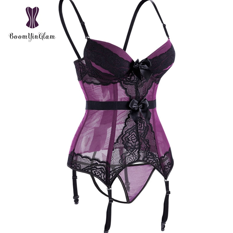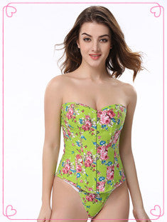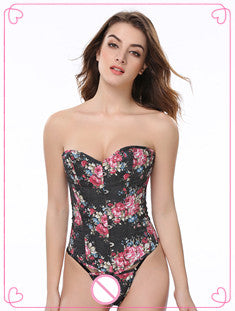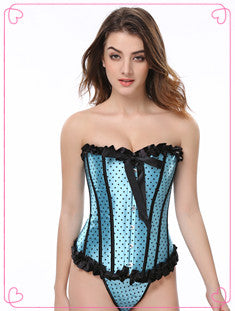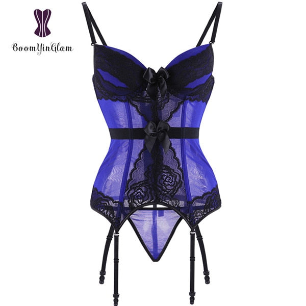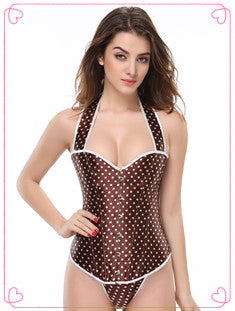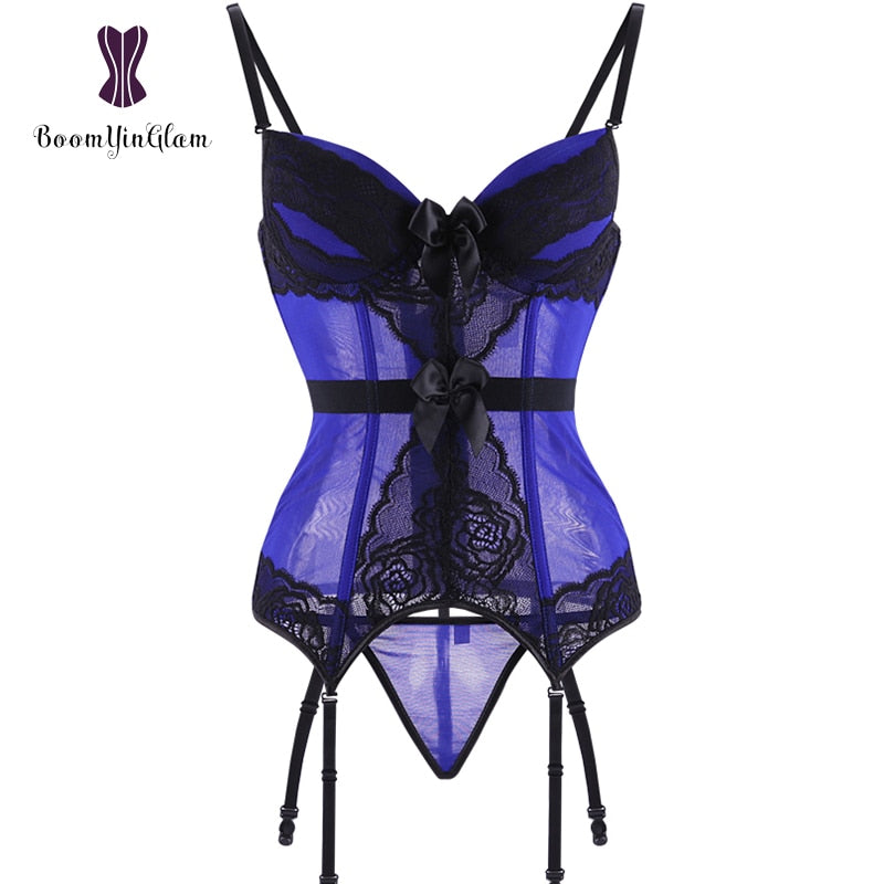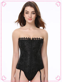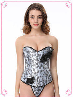 Plus Size Corset & Bustier with G-String. Both offer ample size and bodice support with boning to keep it all tight.