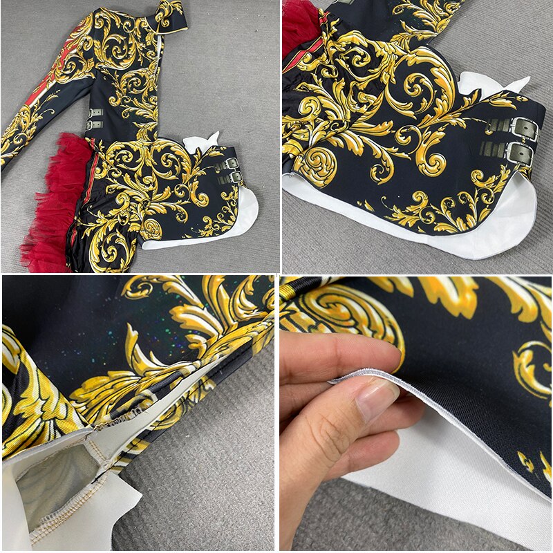 Printed spandex makes a statement on arrival. No need to be fashionably late. Dry cleaning recommended.